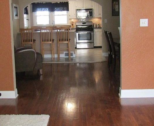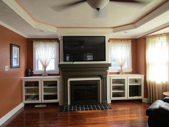 Are you looking for a home for a large family? You won't want to miss this one! As you approach this home, take notice of the friendly front porch which is great for visiting with neighbors or friends. While touring this home, you will notice several unique lighting and other features throughout. Walking through the front door, you notice the original hardwood flooring which throughout the home. Also in the living room you will find lighted trey ceilings, bay window, fireplace with built in cabinets on each end. Stepping into the large dining room notice the lighted trey ceiling and the breakfast bar, seating 6, that is between the dining room and kitchen. Enter into the large, updated kitchen equipped with stainless steel appliances, tile flooring, an abundance of cabinets and again