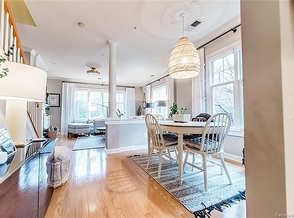 Gorgeous 2BR/2.5 bath South Park townhome with garage! Tons of natural light, all new designer light fixtures and a private patio/courtyard out back! This end unit is a must see, updated bright white kitchen - tile backsplash and stainless appliances. Open floor plan, hardwoods, big rooms. Brand new organizers in master closets. Oversized tandem garage with new coated floor... many options for this space, storage, workout... Plenty of storage in garage. Relax on your private courtyard or at the community pool... or walk up to Phillips Place, Whole Foods, Starbucks or SouthPark Mall for dinner and a movie! Can't beat this unit in this area of town! Come see.