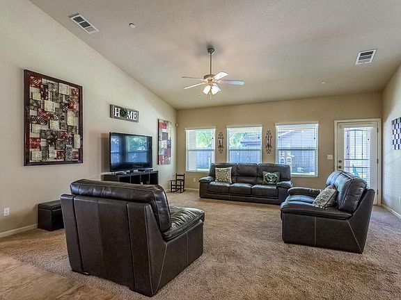 This Lennar, Radcliffe model, home features a big corner lot with potential RV parking. You will cherish the open great room with recessed lighting, vaulted ceilings and beautiful neutral color that would complement any decor. The kitchen is a cooks dream with ample counter space and plenty of cabinets. It features stainless steel appliances, walk-in pantry, and a breakfast bar. Home has 4 spacious bedrooms, two full bathrooms with dual vanities, and an oversized 2 car garage. The master suite is spacious with vaulted ceilings and his and her walk-in closets. If efficiency is on your list, this 4 year old home is sure to impress the most discriminating buyer. It has a tankless water heater, and a 15-SEER HVAC unit! The spacious backyard is ready for your landscaping ideas or has plenty of room for an in-ground pool. What a great time to own this move in ready home.