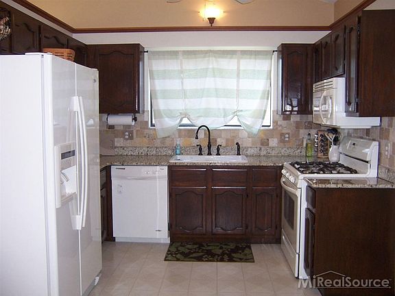 Adorable 3 bedroom brick ranch with large room sizes. Large eat-in kitchen with plenty of counter space and cabinets. Bright, sunlit greatroom with gas fireplace and doorwall leading to beautiful 2 tier stamped concrete patio in pretty backyard to run and play. French doors leads to 15 x 12 master bedroom. 3rd bedroom with french glass doors is currently used for office. Full bathroom with double vanity sinks. Nicely finished basement with 2nd full bath and an extra room. I.D.R.B.N.G.