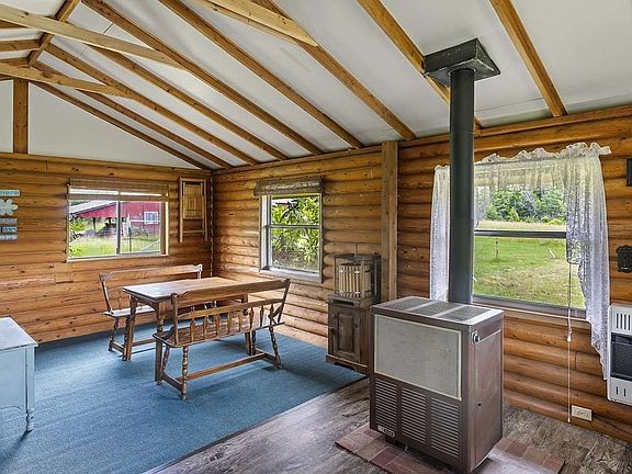 Cabin the woods! If you're looking for your own private off grid living, this is it! 1 bed, 3/4 bath on 13.55 MOL acres adjacent to State Land. Updated bathroom, kitchen, & floors. Enclosed porch, bedroom has it's own walk out, wood stove & updated propane wall heater. Main room w/ wood stove, propane stove/oven, fridge & wall heat. Septic installed, spring fed well, wind & solar power. Fenced yard, fruit trees, barn/garage & 2 sheds, kennel, garden area, generator 220 also included. Don't miss this one!