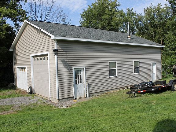 Spacious 4 bedroom, 2 bath, ranch on nearly an acre, with backyard privacy. HUGE detached heated garage with high ceilings and commercial-grade floor, 30'x44' - every man's dream! 2 post car lift/tools/equipment in garage will not convey, but many are for sale. Country living, yet 5-10 minutes away from all the amenities. Relaxing outdoor patio perfect for entertaining or just enjoying nature. Nearly all the windows have been recently replaced. Large eat-in kitchen with custom cabinets. Wheelchair lift and ADA-compliant bathroom. Coveted Marcellus school district.