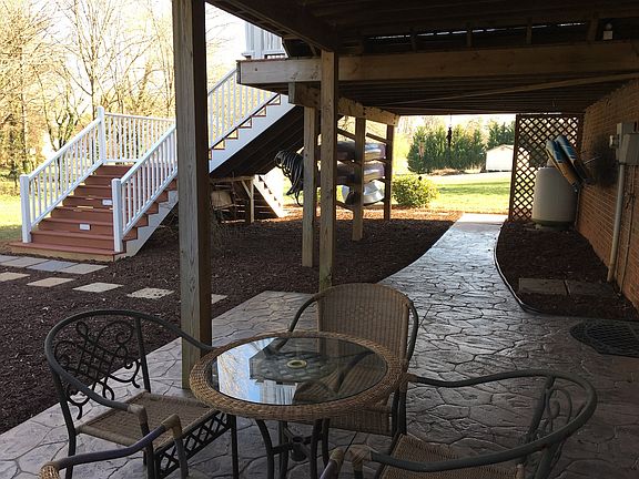 Looking for small town living with short commute to major Triad cities? Call owners at (336) 682-7136 to schedule an appointment to see this updated farmhouse style home designed for raising a family or hosting visiting family and friends in quiet Springwood neighborhood close to parks, schools, and shopping! Welcoming rocking chair front porch and large foyer lead to bright updated eat-in kitchen featuring granite countertops and energy efficient appliances. Large adjacent walk-in laundry includes counter, cabinets, and a shoot from bedroom level. Family room is a favorite gathering space with gas log fireplace. LR has French doors that offer privacy. Roomy master suite includes dressing area, walk-in closet, and full bath with garden tub and separate shower. Generous closet space in all bedrooms. Finished walk out basement features office/5th BR, den with built-ins, and storage. Garage and workshop space. Enjoy gathering outdoors on 3-tiered back deck with built in seating and over 500 sq. ft of entertainment space that also provides shade for paved patio below.