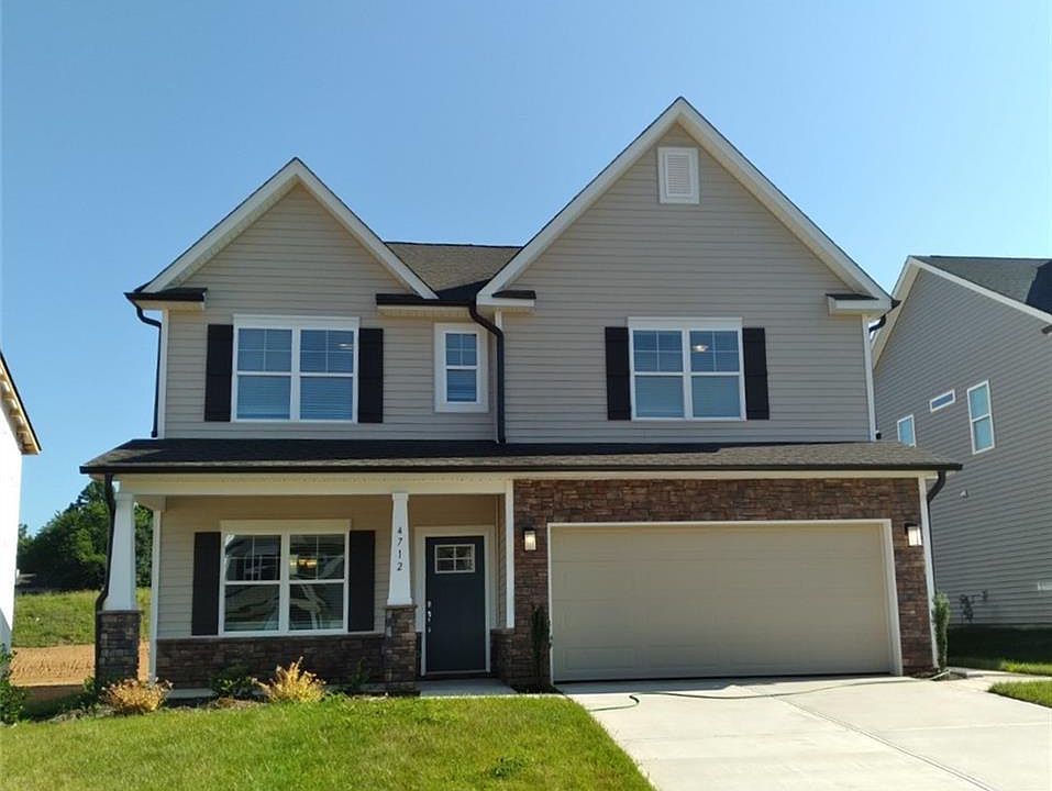 The Goldenrod plan. Just off the foyer is the studio with glass doors. The gourmet kitchen has an island and granite countertops. The appliances are stainless steel and include a gas cooktop, microwave, oven, dishwasher and a chimney hood. There is a walk-in party pantry off the kitchen. The breakfast area is open to the kitchen and the great room with a vaulted ceiling. The great room leads to a covered porch on the rear of the house with additional patio. The primary suite is on the main level with additional windows and the primary bath has double vanities, private water closet, garden tub & separate shower. There is also a large walk in closet. The laundry and a powder room are also on the main level. Upstairs are 3 spacious bedrooms, 2 full baths, a large loft with an oversized finished storage room that leads to unfinished walk-in storage. The majority of the main level has luxury vinyl plank flooring, tile in the primary bath and wood stairs. EcoSelect certified.