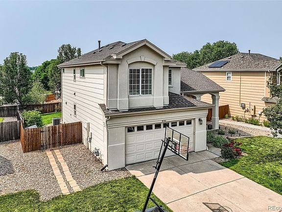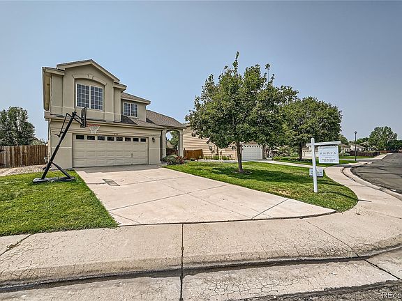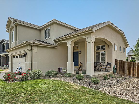 Welcome to this stunning two-story home located on a serene cul-de-sac-like street! Step onto the welcoming covered porch and enter an inviting, open floor plan bathed in natural light, featuring hardwood floors that flow through the entry, family room with vaulted ceilings, dining area, and hallways. The beautifully remodeled kitchen is a chef’s delight, boasting new 42" cabinets, luxurious granite slab countertops, stainless steel appliances, upgraded fixtures, pendant lighting, a pantry, and a cozy eating space with access to the patio. Upstairs, retreat to the primary suite with a spa-like, four-piece bath featuring dual sinks and a spacious walk-in closet. Two additional bedrooms, a full bath, and a convenient laundry room complete the upper level. Enjoy the beautiful, large backyard perfect for outdoor activities. This home has a fresh coat of paint inside and out, adding to its pristine appeal. Just a block away, you'll find access to the community pool, ideal for cooling off on hot summer days. Plus, a new roof was installed September 7th, ensuring peace of mind for years to come. Additionally, the large crawlspace spans the entire house, providing ample storage space. Nestled in a great neighborhood, with a park just around the corner and close proximity to schools, a recreation center, shopping, a future light rail station, and I-25 for easy commutes, this bright and inviting home is a must-see!