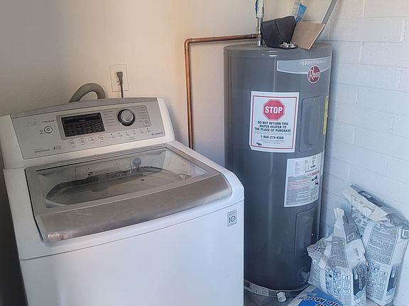 A 2 Bedrooms and 1 bathroom upstairs. Great Room floor Plan with dining area, coat closet, large pantry, private courtyard with separate laundry room. Newer AC Unit, New Flooring in the entire house, New Bathroom, Countertop, Almost Everything is new. Refrigerator will be provided before moving in date. Washer & dryer included. Home is close to the airport and Tempe. Located on 48th Street and Broadway Road. Home has electric appliances.
