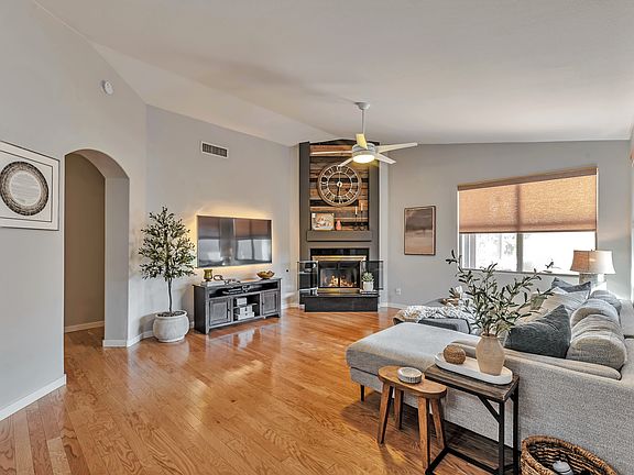 Come enjoy this beautifully updated single level home in the highly desirable community of Desert Ridge. Home even has 28 owned solar panels that result in minimal energy bills that average $78 per month! As you enter through the decorative security screen door you are greeted with appealing neutral colors, attractive manufactured hard wood flooring, plantation shutters, and updated light fixtures and ceiling fans throughout. The chef's kitchen has newer white shaker cabinets, granite counters, an oversized island, subway tile backsplash, and stainless steel appliances, to include a gas range with hood and large French door refrigerator. Many restful days will be spent in the warm and inviting family room with gas fireplace accented with granite and reclaimed wood. The expansive master bedroom is adjacent to the beautiful master bathroom with newer cabinetry, granite counters, vessel sinks, walk in shower and soaking tub. As you venture out to the backyard, you will fall in love with the huge custom patio cover, multi level yard, extensive use of stone pavers and low maintenance landscape. Welcome to your next Home Sweet Home! Landlord uses Transunion for online credit report and background check. Link will be sent to tenant to pay $47 credit app fee and fill out upon receipt of application. Before submitting application, be aware that Landlord will not consider tenants with credit scores below 700, with a negative background check, or with dogs larger than 60 lbs.