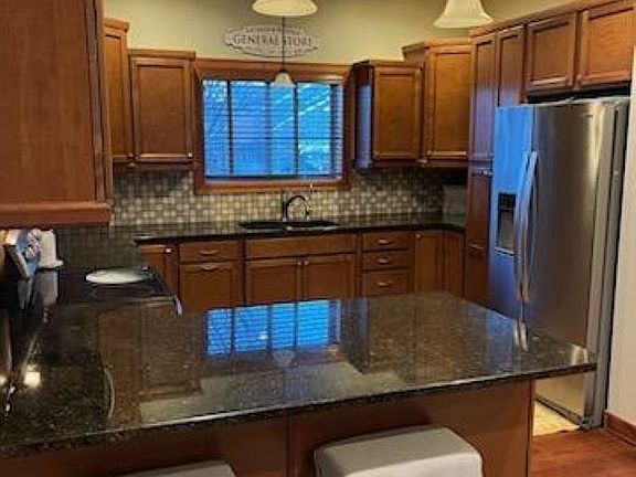Nice 5 bedroom, 3 full bath ranch style home with open concept and south facing driveway. Beautiful cherry wood flooring throughout the main living area. The kitchen has tons of storage with granite counters and a snack bar. Living room features a trayed ceiling, gas fireplace and slider to the large deck and fenced yard. The main floor laundry is right off the garage. The lower level features a spacious family room with a gas fireplace and a wet bar area. Home is wired for surround sound and speakers. 2 more bedrooms, a full bath and a finished storage area complete the lower level. The custom wet bar has heated floors, ceramic floor and bar. Great place for entertaining! New exterior paint in 2020, solid panel doors and new carpet of main bedrooms 2023. This is a must see home!