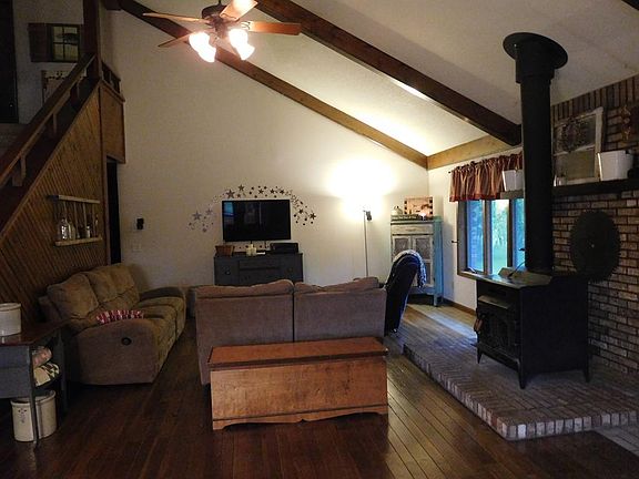 TUCKED AWAY! You will enjoy the private setting of this 3 bedroom, 3 bath home on 4 acres. The spacious living room features a vaulted ceiling and a brick hearth that will accommodate a wood stove. French doors lead to a deck. Cooking will be a pleasure in the large kitchen with an abundance of cabinets, a pantry, and a built in desk. The master suite includes a sitting area, an on suite bath, and a walk in closet. Two large bedrooms upstairs also have walk in closets, and share a bathroom. There is a 2 car attached garage, and a patio. The 2 story 30 x 40 shop has a 1200 sq foot unfinished apartment on the upper level. There is also a 14 x 20 storage building. Call to take of tour of this property.
