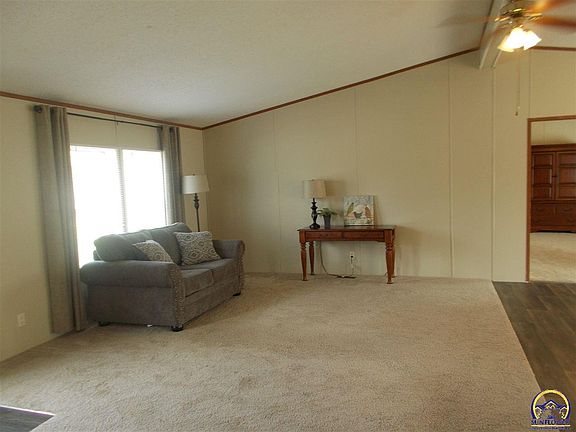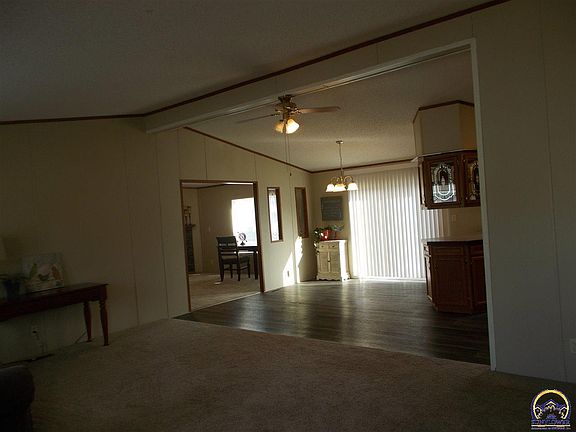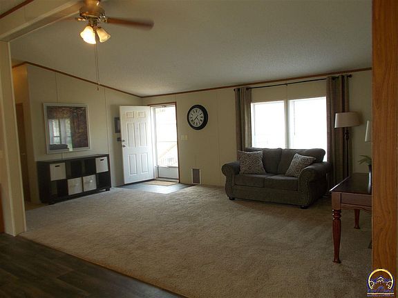 Beautiful mobile home with open floor plan, 4 bed 2 bath in South Village. Lots of new done to this home. A very well maintained, landscaped community in Washburn Rural School District. Great amenities include: a swimming pool, tennis/basketball court, playground. On-site storage lot for RVs, trailers, campers and 2 storm shelters, 1 handicap accessible. Two small pets are allowed in each household. $325/mo pad fee includes water, sewer & trash. Credit & background checks required. Home can be moved!