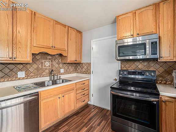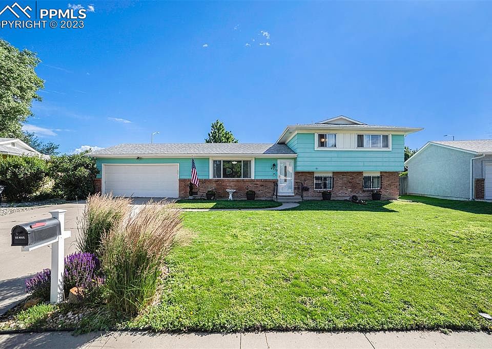 Welcome to this adorable home situated within walking distance of a lovely park and an excellent elementary school. Step inside to discover a beautifully updated kitchen boasting sleek Corian countertops, perfectly complementing the modern design. The expansive fenced back yard is a true oasis, featuring emerald green grass that invites outdoor play, a covered patio for relaxing or entertaining, and a convenient storage shed for all your tools and equipment. The pet-friendly fence ensures a safe and secure environment for your furry friends to roam freely. The covered porch offers a charming spot to relax and enjoy the tranquil atmosphere with boasting breathtaking views of Pikes Peak. With four spacious bedrooms and three baths, there is ample room for the whole family to spread out and enjoy. Additionally, the oversized two-car garage provides plenty of space for vehicles and additional storage. Don't miss the opportunity to make this charming property your own!