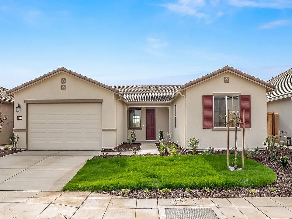 Welcome to this beautiful brand-new, single-story home situated on a 6,000 St Ft. homesite. One step inside and you will immediately notice a bright open floor plan. A flex space can be used for homework or craft time. Relax on the weekends in a convenient den. A spacious family and dining area featuring sliding glass doors lead outside to a large backyard. Whip up culinary delights in a modern kitchen featuring a large island with lower cabinet, quartz countertops, pantry, and stainless-steel appliances. The primary bedroom is located at the back of the house for added privacy and leads to a luxurious primary bath with walk-in shower, dual sinks, and linen closet. Large walk-in closet. Dedicated laundry room. Generous sized secondary bedrooms. Other notable features include luxury vinyl plank flooring at entry, kitchen and living and dining areas, a 40-amp prewire charging station and a solar energy system (lease or purchase required. Schedule an appointment today.