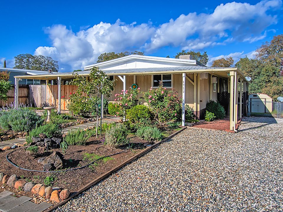 Move in ready manufactured home on your own property that backs up to a green belt. The interior has been updated with new paint, new flooring, a newer heating unit, two new window A/C units, one with heat, an updated kitchen with new appliances including Refrigerator, Washer and Dryer. Both bathrooms feature a shower over tub. Enjoy the outdoors on the spacious covered rear deck that steps down to a second deck. Mature low maintenance landscaping. RV parking and an attached covered 2 car carport with a storage building/work shop. Great location near shopping and restaurants.