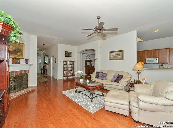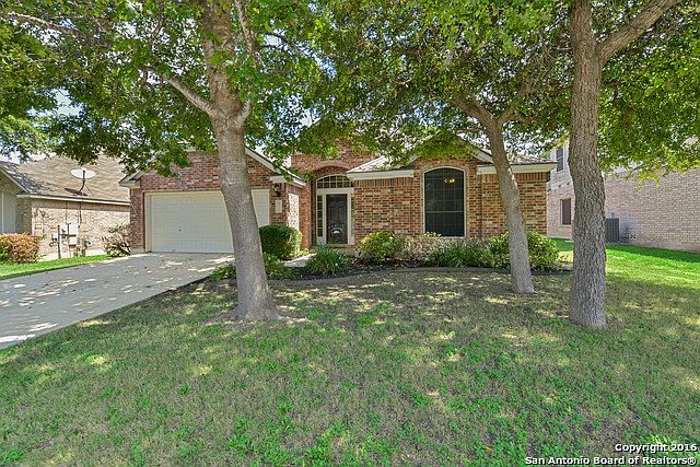 Quaint single story nestled in desirable Forest Ridge. Welcoming curb appeal w/mature shade trees. Open and inviting floor plan with roomy living area featuring high ceilings and brick fireplace. Kitchen has an abundance of cabinet space and eating area. Separate dining room. Spacious master bedroom with great natural lighting and bath that features large vanity with separate tub/shower. Sizable backyard with covered patio and plenty of space to entertain. Great location near I35, RAFB, and the Forum Shops.