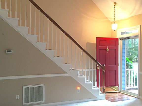 This adorable cottage in the woods in meticulously clean. The beautiful wooded setting will instantly be noticed when driving up to this cul de sac home. Upon entering, you will be awed by the open floor plan and efficient use of space. The family room with decorative fireplace naturally leads you into the well appointed kitchen. From here, you enter into the first floor master bedroom with its gorgeous on suite bathroom, which includes shower, soaking tub, and dual vanities. Going upstairs you will discover 2 good size bedrooms, one of which has a built in desk and would make a great home office. Also upstairs is the shared bathroom. Moving outside, you will get a feeling of being in the woods, even though, you are just minutes from stores and shops. In addition, you have access to all the Hedingham amenities including: golf privileges, 2 outdoor pools, playgrounds, tennis courts, indoor basketball, yoga studio, fitness center and much more. No showings are available April 14 - 18, 2022. New flooring is scheduled to be installed late April or early May. Minimum Requirements: Verifiable income of $5,850 per month, good reference for previous housing history, pass credit check over 650, no outstanding past due obligations, no recent (10 years) bankruptcies, a clean criminal record, and no previous evictions. If you meet these requirements, then please contact me for an appointment. The home is available to view immediately, but there are no showings April 14 - 18.