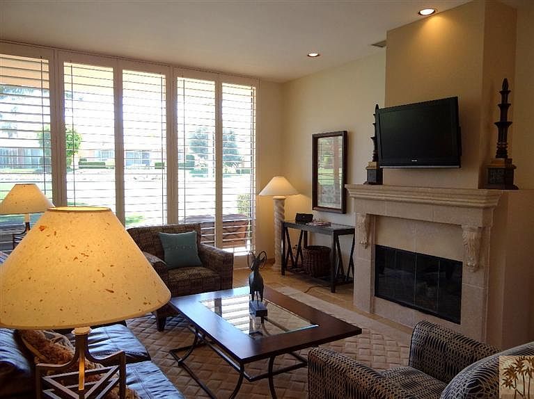 This wonderful 2BD/2BA plus 3rd BD/office seasonal rental is located in the exclusive Marrakesh CC. It is situated on the 16th fairway with the spectacular unobstructed view of the golf course, lake and mountains. Extensively upgraded with custom kitchen cabinetry, granite counters, designer tile floors, new bathrooms, plantation shutters, fireplace. Sliding glass doors open in to the private South facing patio. Spacious Master Suite offers King bed and a walk-in closet, guest bedroom has 2 Full beds, 3rd bedroom/bonus room offers a Queen Murphy bed. It is tastefully decorated, well equipped and has everything to meet your needs during your stay. Community pool is conveniently located just minutes away. Marrakesh is one of the most desirable locations for a desert vacation experience. It offers 18-hole executive golf course, 14 pools/spas, fitness, tennis and clubhouse with fine dining. Located near famous El Paseo with world class shopping and art galleries.