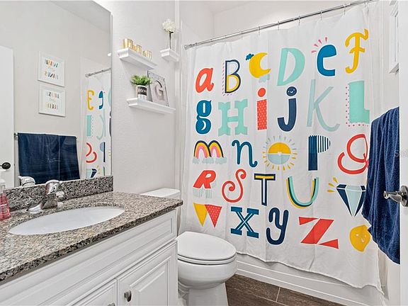 - Interior Features: Ceiling Fans(s), Eating Space In Kitchen, High Ceiling(s), Master Bedroom Downstairs, Open Floorplan, Split Bedroom, Stone Counters, Walk-In Closet(s), Kitchen/Family Room Combo, Solid Surface Counters, Window Treatments, In Wall Pest System, Pest Guard System