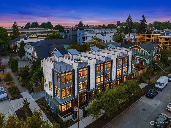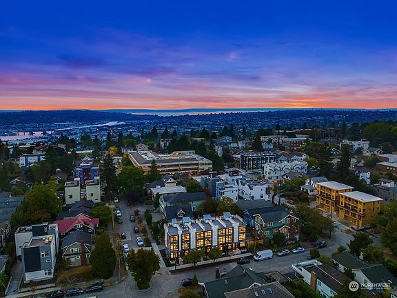Premier builder MRN HOMES presents a luxury new construction townhome in Fremont with OFF-STREET PARKING SPACE INCLUDED & beautiful views of the Seattle Skyline. Boasting a contemporary design with premium fixtures & finishes and light-filled rooms with large windows. Open-concept living with a gourmet kitchen, premium SS appliances & custom cabinetry. Mini-split heating &cooling. Top floor primary suite w/spa-like bath. 2nd bedroom on lower-level w/bath & bonus/flex space upon entry. Huge entertainer's roof deck with gorgeous views of the Seattle Skyline and Bellevue! Green Lake, vibrant local shops, eateries, nightlife, breweries, sought-after parks & more w/in mins! 4-Star Built Green.