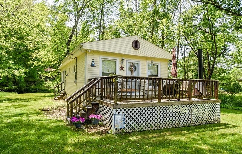 Vacation (or full-time) cottage on a Lake Lemon canal. This one bedroom, one bathroom home is conveniently situated for boating enthusiasts. A dock could easily be added to the property, and you can guide your boat through the picturesque canal right onto Lake Lemon. The large bedroom has a ceiling fan, wood burning stove and windows looking out to the canal. A nice living area with two more ceiling fans provides kitchen and dining space as well as a comfortable sitting/tv viewing area. While away the hours listening to the birds and enjoying morning coffee or afternoon drinks on the front porch. The home is a 22-minute drive from Bloomingtons eastside shopping, restaurants, and theaters.