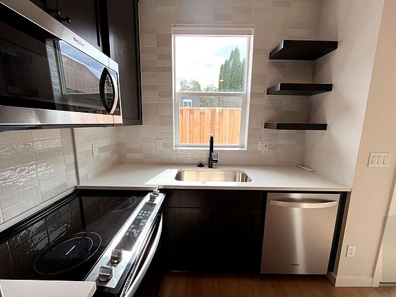 This stunning townhome-style unit features high-end touches, tall ceilings and designer features! Open-concept kitchen boasts stainless steel appliances, slab counter and gorgeous backsplash tile. Dishwasher, disposal, built-in microwave, flat top range and fridge included. Floating corner shelves, as well! Living room has a slider door opening to a fenced private patio. Also on the first level is a half bathroom and a closet featuring bicycle storage hooks. Both bedrooms are on the second level, featuring soft carpet, bright windows and large closets. Washer/dryer included in laundry closet. Full bathroom on second level has a tub and shower combo, and tons of room for storage! Located in the Humboldt neighborhood in North Portland. Close to tons of popular shops, cafes and eateries! Biker and walker paradise, with a 98 Bike Score and 93 Walk Score! Close to the MAX Yellow Line. Less than a 10 minute bike ride to Alberta Arts District. Just a 20 minute walk to Peninsula Park! Please note the images and video may be of a similar unit; layout and features may vary slightly. LEASE DETAILS: - Lease Length: 12-months - Pets: Dogs negotiable with monthly pet rent of $25/per pet. Pets must be spayed or neutered. Pets must be at least 1 year or older. A pet agreement must be signed prior to pets living on site. Sorry, no cats allowed. - Utilities: Garbage, recycling and compost included. Water/Sewer billed back per unit. Tenant pays electric. - Landscaping: Owner pays for landscaping of the premises. Tenant is responsible for individual patio landscaping upkeep. - No smoking on the premises. - Renters insurance required. HOW TO APPLY: - The Application Period Opens on Friday, March 7 2025 at 10:30 AM. - We process completed applications in the order they are received. All individuals in your application group who are 18 years of age or older must submit an application in order for the application to be considered completed *Please note the property address will only populate on this page 15 minutes before the application period opens. Do not submit the application early as time penalties will apply, per housing bureau ordinances. Application/Screening Fee: $49.95/adult Screening Criteria Overview: Total verifiable household gross income should be at approximately 2x the monthly rent. Must have a minimum of one year verifiable rental history. We run credit, criminal, and eviction history. Please inquire with Portland Property Management for a full application with complete screening criteria. Accessible Dwelling Unit: No Please note that while this property is listed with a projected availability date, the actual move in date is dependent on the approval date of an application. Upon application approval, we will set a move in date within a reasonable amount of days to accommodate our company procedures and in accordance with local ordinances. Please note that showings of occupied units are not guaranteed and/or subject to cancellation and availability.