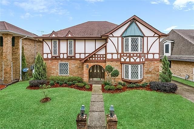 Home has great bones-by the lakefront.Original owner built in 1976. Home features a/c and heat replaced 2 yrs. ago, new roof to home and garage six years ago, whole house generator installed after Hurricane Katrina, double insulated windows,2 new vanities in half bath upstairs,wet bar, gas fireplace, aluminum barrier in attic, floored attic,dbl. carport with 7x21 storage unit. Home never flooded from rising water.All bedrooms are good sizes with walk-in closets.Utility room is large with toilet. Must see.