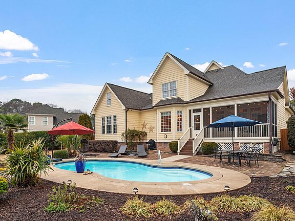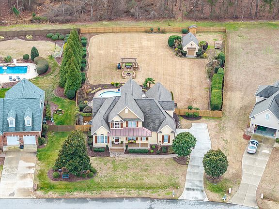 Meticulously maintained and ready for move-in. Like living at your own resort. Heated salt water pool, huge .64-acre fenced lot with gorgeous landscaping / hardscaping, irrigation, pergola, fire pit circle, wired outdoor shop. Open flowing floorplan fills with natural light - great for entertaining. Beautiful hardwood floors on much of first floor. Vaulted family room with transom windows, built-ins, and cozy stone fireplace. Gourmet chef's kitchen with granite countertops, stainless appliances, walk in pantry, butler's pantry. Elegant formal dining room plus breakfast room. 1st floor master suite with trey ceiling, private bath with large walk in shower + jetted tub. Huge closet with built-ins. 1st floor office with French doors and adjacent full bath could be used as guest room (permit for 3 bedroom). Large bonus room with finished storage room. Breezy screened porch and covered front porch. Tons of little details like reverse osmosis filter, wired outdoor speakers, planter beds, garage mop sink.