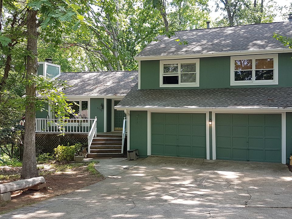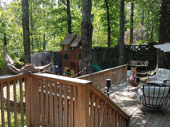 GREAT CHANCE!! 3 Bedroom, 2.5 Bath split level home with open floor plan and great back multi level deck - perfect for entertaining!! This home features a Great Room with stone fireplace, vaulted ceilings and exposed wooden beams. Kitchen with separate eating area, Formal Dining Room and a Huge Den with built in bookshelves. So many windows offer great natural light and bright feel - Must See!