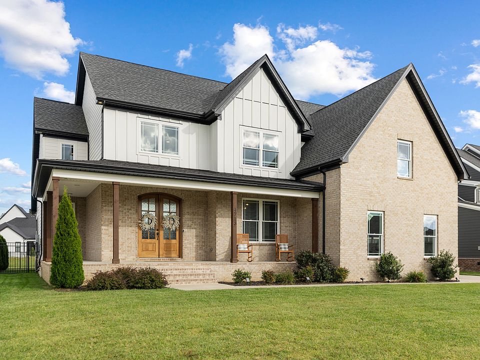 Welcome to this stunning 2022-built home in Clear Creek, offering over 3,500 sq. ft. of traditional-contemporary living just minutes from Nolensville, Franklin, and Brentwood. This 4-bedroom, 3.5-bath beauty feels like new and sits on one of Smyrna’s most sought-after sides. The beautifully stained mahogany front door and wrap around covered porch, gives the home a very warm and inviting feel before taking those first steps inside. On the interior, enjoy an open floor plan with solid white oak hardwoods throughout the entire home, high ceilings with spacious built-ins and a gas fireplace in the living room, and an open kitchen with a gas cooktop & full appliance package. The spacious primary suite features a large walk in shower and custom walk-in closet, and its own private seating/office space near its entryway. Stepping outside through the beautiful sliding doors, you'll come upon a screened in porch with a wood-burning fireplace, and a fully fenced backyard. A newly installed irrigation system makes lawn care and maintenance easy. Top-rated schools, prime location, pre-wired whole home sound system, and beautiful finishes make this home a must-see!
