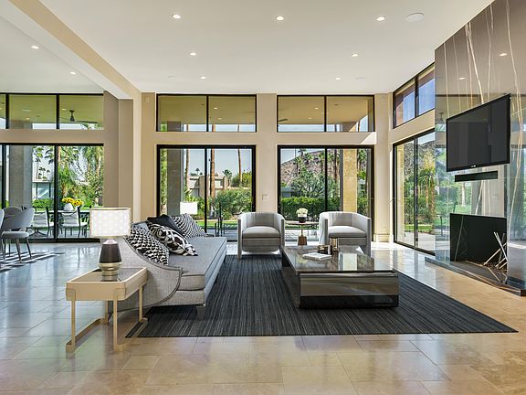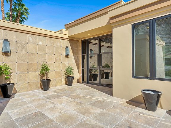 Light and Bright Crystal Cove home, in Eldorado C.C. has been completely remodeled and expanded with the finest materials available. Impeccable craftsmanship abounds with stone, marble and quartz in the kitchen and bathrooms. Private entrance leads from stunning contemporary glass and steel double doors into a grand formal entry and and great room beyond with high ceilings, black marble fireplace, and walls of glass to the outdoors. This spacious home is perfect for entertaining and family gatherings. Eye-catching powder room has an onyx countertop and glass door to the commode. Beautifully designed Chef's gourmet kitchen, with top of the line appliances, quartz counter tops, large center island with sink and wine storage, opens up to the dining area and out to the patio beyond. Large master suite, with a substantial master bath, has dual sinks, large walk-in closet, soaking tub and shower. Guest bedrooms each have their own walk-in closets and beautifully designed bathrooms. Separate laundry room, on one side, and a mud room leading out to the garage on the other. Master bedroom and one of the guest bedrooms are ready for your floor covering choices and all walk-in closets are ready for your customization.