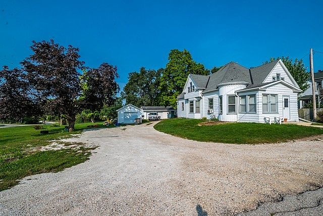 Charming 2-flat with turret defines the vintage character . As part of commercial growth in the early 1900's, it is believed that this house was built to serve the phone company for this area in 1915. Transition to duplex: main floor has 3 bedrooms; upper has 1 bedroom;much original woodwork, many updates (see "documents"), functional basement. Two tax parcels (corner lot has the newer 14'x22' garage-rented with upper unit). Parent parcel (0710) has the beautiful home and 630 SF garage (rented with 1st Floor); over 1/2 acre. TWO: lots, gas and electric meters, furnaces, HWTs. Fox River access via park is 1/2 block away. High and dry location for this one-of-a kind property in western Kenosha County.
