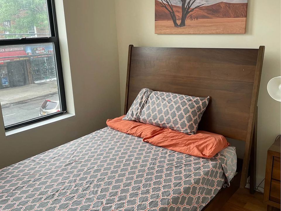 Room for Rent 4714 Church Ave, Brooklyn, NY Prime East Flatbush / Prospect Park South Border Private Bedroom in a 4-Bedroom Apartment 2 Full Bathrooms Welcome to a newly renovated 4-bedroom apartment offering a clean, modern living space in the heart of Brooklyn. This is a private bedroom rental in a shared apartment perfect for students, young professionals, traveling nurses, or anyone looking for a comfortable, move-in ready space. Apartment Features: Fully renovated unit with wood floors throughout Modern kitchen with stainless steel appliances, microwave, and full fridge Glass dining table + stylish houndstooth chairs Two full bathrooms with updated tile, full tubs + showers Large windows, great natural light On-site AC unit and radiator heat Quiet, respectful shared living environment Room Details: Furnished bedroom with full-size bed, nightstand, lamp, and wall art Large window with natural light and street views Real wood bed frame + dresser space available Neutral colors, easy to personalize Ready for immediate move-in Transportation & Location: B35 bus right outside the building Short ride to 2/5 trains Steps to grocery stores, restaurants, laundromats, pharmacy, and shopping 10 mins to Kings County Hospital & Downstate Medical Center 15 mins to Prospect Park Ideal for Working professionals Students Medical staff Remote workers seeking a clean, quiet home