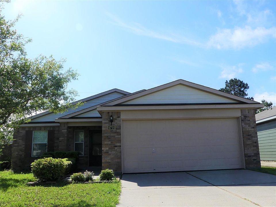 Neat, clean and updated home ready for immediate move in. Open plan living, dining and kitchen area with laminate wood floors. Central island kitchen with black appliances. Refrigerator, washer and dryer included. Master suite with separate shower and corner garden tub. Two HUGE closets. 2' faux wood blinds throughout. Side deck. Attached double garage.