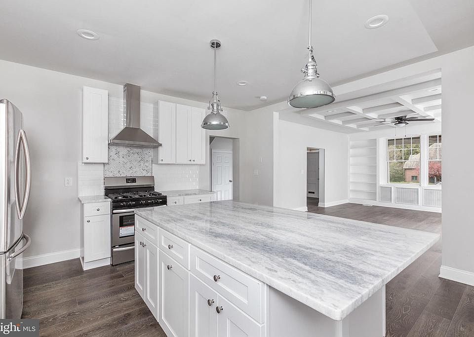 Absolutely gorgeous restoration of Historic Hunting Ridge home. Located on .28 acre lot. Ideal property for the true entertainer. Extra long driveway could accommodate over 12 cars, fully fenced rear yard with detached 2 car garage. Welcoming covered front porch. Impressive entrance with grand entrance. Ideal home for blended family dual Master bedroom suites. Entry level Jr Master bedroom suite. Combined living room with tray ceilings open to outrageously renovated kitchen with 7X4 granite island, stainless appliances and generous counter space. Do not miss the walk in pantry, formal dining room and rear mud room for easy transition from rear garage to main house. 2nd level features gigantic Master bedroom suite with unforgettable super bath and walk in closet. two additional bedrooms a hall bathroom and bedroom level full laundry room. Top level is ideal gathering area for the family or 5th bedroom. Freshly painted unfinished lower level ideal for storage. Newer mechanical systems, central air and hot water heater and updated electric. This home is all ready for you for the holidays.