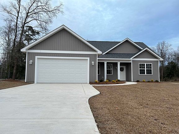 Stunning Move-In Ready, New-Construction home on .78 acres located on Hamp-Ned Road in Conway, South Carolina. This modern farmhouse plan with unique board and batten siding gives this home a welcoming, southern charm feeling, featuring a front porch, rear patio & large backyard with endless possibilities for entertaining. This 3 bedroom, 2 bath, is packed full of additional upgrades & features including board & batten wall treatment in the entryway and dining area, GE Washer & Dryer set, a finished 2 car garage, granite counters, LVP flooring, recessed lighting, & modern farmhouse light fixtures. This welcoming country home embellished with satin nickel finishes, paired with Aristokraft cabinets, stainless GE appliances, large farmhouse kitchen sink and a chic subway tile backsplash. Lack of storage is no issue for this house with ample cabinet space, an oversized walk-in pantry and fully shelved hall linen closet. The cozy master bedroom is adorned with a tray ceiling, a sliding barn door, and spacious walk-in closet. The master bath features a double vanity sink, separate toilet room, a shower / tub combo and luxury towel warmer. Conveniently located in Conway and close to major highway access (701 & 22), this location offers a plethora of shopping/dining options, and only a short drive to Conway Hospital, CCU, HGTC, and the beach! Schedule your showing today and make this your next dream home!