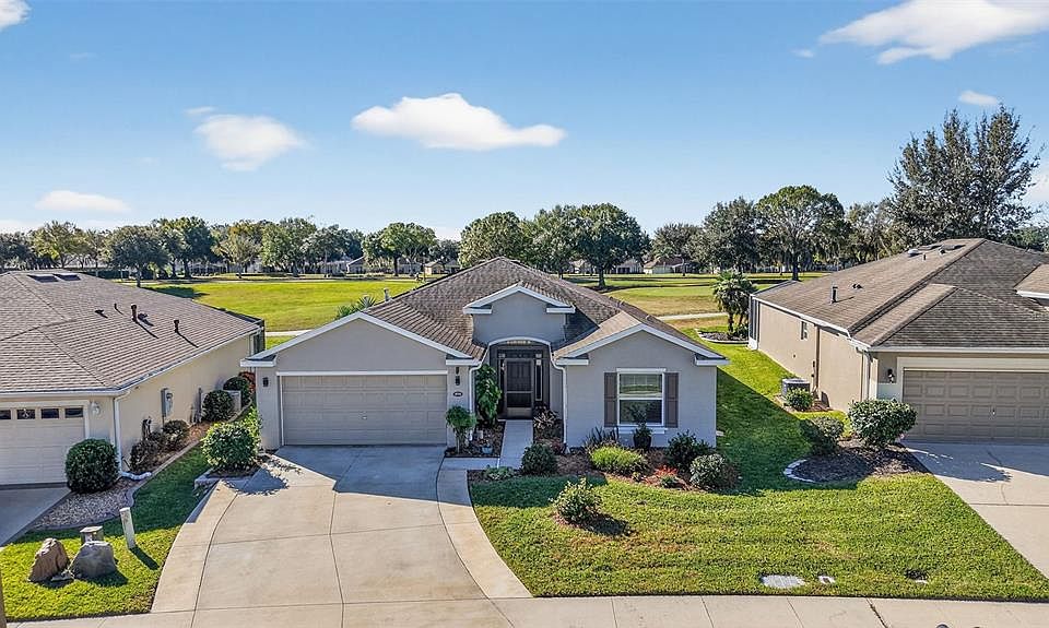 GOLF COURSE LIVING DOESN'T GET ANY BETTER THAN THIS BEAUTIFUL HOME. BOND TO BE PAID AT CLOSING BY OWNERS. THIS LARGE OPEN CONCEPT 1753 SF HOME BUILT IN 2018. 3 BEDROOM TWO BATH HOME WITH 2 CAR GARAGE. THERE HAS BEEN EXTRA SQ FOOTAGE ADDED TO HOME & GARAGE. ..UPGRADES; EV (ELECTRIC VEHICLE ) HOOKUP IN GARAGE, SOLAR PANELS ARE TRANSFERABLE TO NEW BUYERS. WHOLE HOUSE WATER FILTER SYSTEM, NATURAL GAS WATER HEATER, GAS HEAT FOR HOME. UPGRADED APPLIANCES IN KITCHEN, SAMSUNG REFRIGERATOR, BOSCH DISHWASHER, DISPOSAL,MICROWAVE, ELECTRIC STOVE. UNIQUE ISLAND WITH BEAUTIFUL QUARTZ COUNTER TOP, SEATS 4 , & ADDS MORE STORAGE. OTHER CABINETS HAVE UPGRADED GRANITE WITH BEAUTIFUL GLASS SUBWAY BACKSPLASH. GREAT GLASS DOOR TO WALK IN PANTRY. UPGRADED LARGE STAINLESS STEEL SINK, SITS UNDER LARGE WINDOW THAT LOOKS OUT TO BEAUTIFUL PLANTS & TREE.. AT END OF COUNTER THERE IS A NEAT COMPUTER STATION TO PLAN MEALS OR PAY BILLS. THERE IS PLENTY OF ROOM FOR A DINING ROOM TABLE WITH NEXT TO KITCHEN AREA. THE WINDOWS THROUGHOUT THE HOUSE ARE DOUBLE PANE WITH ARGON GAS & LOW E. SLIDING GLASS DOORS TRANSITION INTO EACH OTHER . MASTER BEDROOM IS LARGE & MASTER BATH HAS VANITY WITH DUAL SINKS, A ROMAN WALK IN SHOWER , HUGE WALKIN CLOSET & ADA TOILET. HALL BATH HAS COMFORT LEVEL COUTER TOPS ALSO, TUB/SHOWER W/ ADA TOILET. THE GREAT ROOM HAS WONDERFUL VIEWS OF THE GOLF COURSE AS WELL AS THE 28' X 12' FT LANAI PARTIALLY COVERED BY ROOF & SCREENED IN BIRD CAGE. ARLINGTON RIDGE IS A 55 PLUS COMMUNITY THAT OFFERS A STUNNING 18 HOLE CHAMPIONSHIP GOLF COURSE. SECURITY GUARDS ARE ON DUTY 24/7. BACK GATE IS ONLY FOR RESIDENTS.LOW HOA COVERS, MOWING RESIDENTS LAWNS, EDGING & BLOWING THE DEBRIS OFF, TV CABLE PACKAGE WITH 250 MG INTERNET, ALL AMENITY BUILDINGS ARE ONLY FOR OUR RESIDENTS & THEIR GUEST. STREET LIGHTS THROUGHOUT, SIDEWALKS ONE SIDE OF EVERY STREET, & COVERS INSURANCE & MAINTENANCE. WE ARE CLOSE TO ORLANDO AIRPORT & TAMPA AIRPORT. AS WELL AS DAYTONA BEACH & THE TAMPA AREA. WE ARE CENTRALLY LOCATED IN THE MIDDLE OF THE STATE. THERE ARE 3 HOSPITALS WITHIN 20 MINUTES FROM ARLINGTON RIDGE, MEDICAL DOCTORS , RESTAURANTS , SHOPPING FOR GROCERIES, HAIR, NAILS, BANKS, HARDWARE, CARE CENTERS & MORE.. PLEASE VISIT ARLINGTON RIDGE BEFORE YOU MAKE YOUR NEXT PURCHASE...