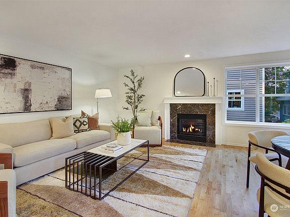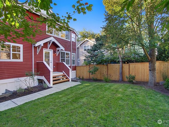 Single family-style living without the markup! Nestled perfectly between Wallingford, Green Lake & Fremont, this home packs a punch. Tucked back off the street, enter through the gate to find your own peaceful & private back yard with mature landscaping. Just inside, a bright east-facing & open floor plan hosts a spacious kitchen, pantry, half bath & ample dining & living space around a gas fireplace--windows lining the space from 3 sides. Upstairs, the primary and 2nd bedrooms each have their own en suite bath, vaulted ceilings & great light. Downstairs, find yet another bedroom with en suite bath! Attached 2-car garage, newer furnace & appliances, new carpet/paint/counters & more--inquire for list of upgrades & inspection report. No HOA!