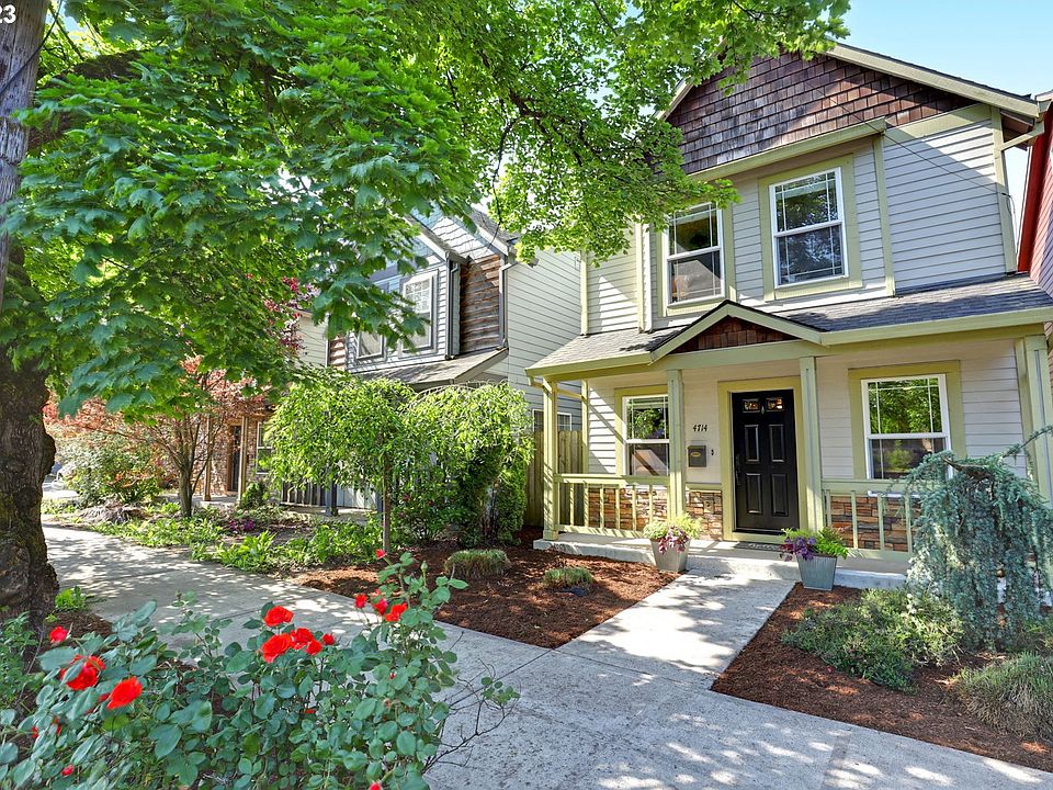 **Quiet, private driveway parking in back!** Wonderful, turn-key newer construction in the heart of Portland's beloved University Park neighborhood. Enjoy today's modern amenities and a desirable, efficient open floor plan in an established, tree-lined neighborhood. Minutes to Portland's prestigious University of Portland and coveted urban amenities. Great flexibility to suit all your needs. Four bedrooms and two full bathrooms upstairs, including an amazing primary ensuite with large walk-in closet. Or perhaps the big, third-floor bedroom becomes your light-filled family room? The beautiful first-floor features hardwood floors throughout, a fifth bedroom/office, a lovely half-bath, open kitchen, dining area and living room. Entertainer's dream! The fabulous kitchen includes a nice eating bar, stainless appliances, gas stovetop, granite counters and warm-tone cabinetry. This modern detached townhome (with no HOA's) is set-back nicely off the street and behind mature landscaping, so it lives remarkably quiet and serene inside. The private rear driveway and main back entrance (off N Huron) makes life convenient, serene, and hassle-free. Large bicycle garage for all your toys and storage needs. Covered front porch and back lawn area to enjoy outdoors year-round. Minutes to beautiful Columbia Park, Fred Meyer, New Seasons and dozens of fun cafes and restaurants. Very Walkable and Biker's paradise (score 78/98). Energy score of 6! Incredible value for this move-in ready home or ideal investment opportunity. [Home Energy Score = 6. HES Report at https://rpt.greenbuildingregistry.com/hes/OR10215398]