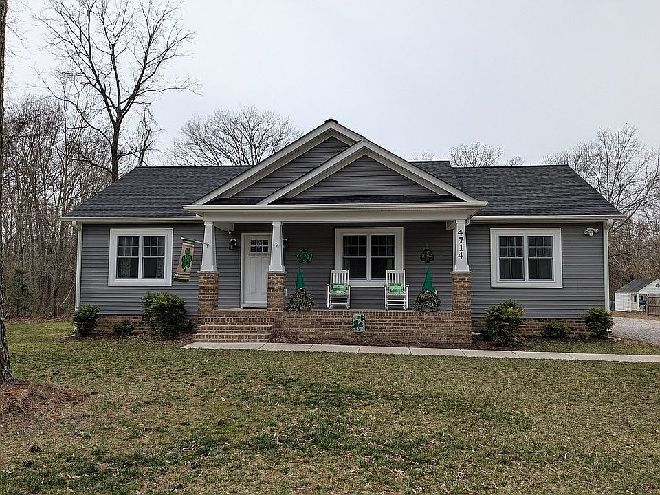 PRICE REDUCED: Beautiful 3-bedroom 2 bath rancher built in 2021. Home is move in ready. Covered concrete porch, vaulted ceilings, neutral paint color, recessed lights, ceiling fans, and LVP flooring throughout home. Kitchen has white custom cabinets with a built-in pantry. Granite countertops, white subway tile. Island has plenty of room for storage. All kitchen appliances are included in the sale. Spacious living room and dining room. Brick fireplace has never been used! Primary suite is located on one side of the home. Bedroom has plenty of room for a king bed and ample room for dressers and a walk-in closet. Bathroom has a double vanity and a shower/tub combination. Two remaining bedrooms are located on the other side of the home with a convenient spare bathroom in between. Bathroom has a shower/tub combination. Laundry room has a pocket door and a shelf for storage. 12'x12' deck on back of home. 30'x40' 3 stall metal garage with a 4" cement slab. Garage has spray foam insulation and electricity. Close to 460 and 85. Minutes away from the Lake Chesdin public boat ramp. Additional items that can be negotiated with the purchase of the home include a generator with power cord, two white rocking chairs, ladder (for garage lights), riding lawn mower with bagger, self-propelled push mower and industrial size garage fan.