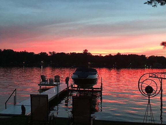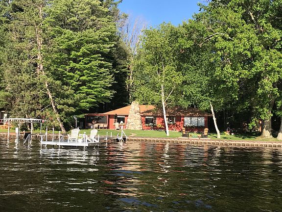 Vertical log home with 200 feet of sandy Wixom Lake waterfront, steel sea wall, tongue and groove interior, stone fireplace, 3 bedrooms, 1 1/2 baths, and a screened in porch with beautiful sunset views.