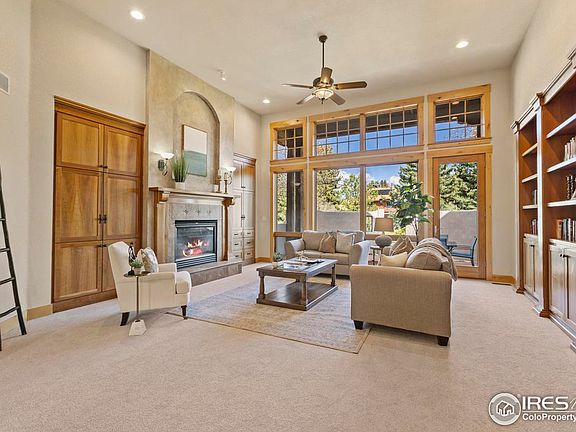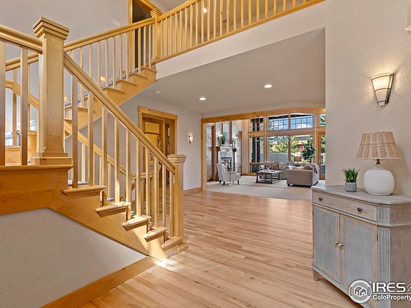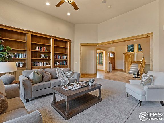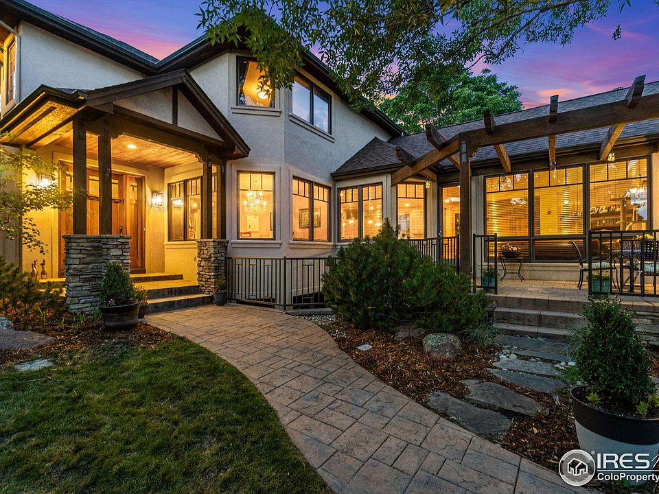 Welcome home to this custom Colorado masterpiece built by Jay Stoner. Nestled on a large lot on a quiet cul-de-sac with mature trees and peaceful surroundings, this quality home overlooks the Cathy Fromme open space with stunning views and out-the-door access to miles of trails. Dine on the front patio while enjoying incredible sunsets; indulge in peaceful mornings on the private back patio where you'll be treated to birdsong and glimpses of native wildlife. Need space? This expansive home has it! With 6 bedrooms, 7 bathrooms, ensuite baths and separate living areas on every level this home facilitates togetherness as well as moments apart. Rich hardwood floors and vaulted ceilings set the tone for the exquisite craftsmanship found throughout the property, with large windows enhancing the open floor plan. Amenities include a main floor primary bedroom with luxury 5-piece bath, main floor office with an ensuite 3/4 bath, four fireplaces, large dining room, a "hidden room" accessible by bookshelf door, wine cellar, wet bar, spacious laundry room and 3-car garage. Even the most discerning chef will be pleased with the gourmet eat-in kitchen appointed with double ovens, Viking gas range, built-in microwave, granite countertops, a walk-in pantry, prep sink and plenty of room to sit and socialize at the island. Don't miss the opportunity to own this remarkable home located in the desirable Harmony Ridge Neighborhood.