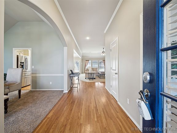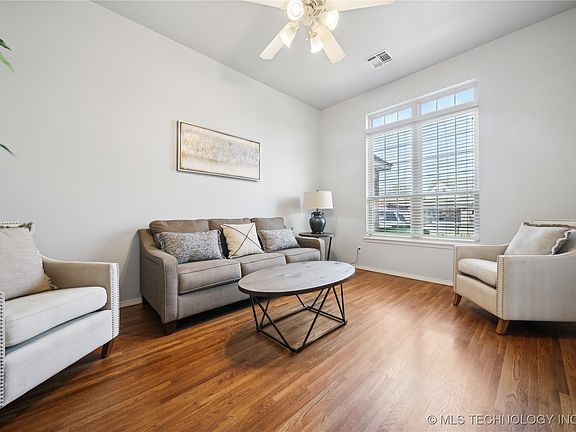 Beautifully maintained one-level home with a fantastic split bedroom layout. This 3-bedroom home also has an office or second living and formal dining, offering great flexibility and space. The open floor plan is filled with natural light, creating a warm and inviting feel throughout. Gorgeous hardwood floors enhance the charm in several areas, while the updated kitchen boasts new counters and appliances—perfect for cooking and entertaining. The primary suite is a true retreat, complete with a large walk-in shower designed to accommodate a wheelchair, large walk in closet, vaulted ceilings and his and her sinks. Recent updates include a newer roof for peace of mind. Refrigerator, washer, and dryer all remain. Enjoy neighborhood amenities like a community pool and park, and take advantage of the home’s convenient location with quick access to schools, shopping, dining, and medical care. This home offers comfort, style, and a prime location—don’t miss out!