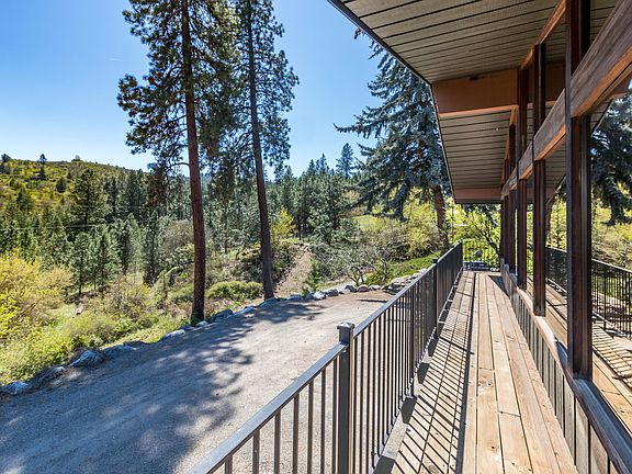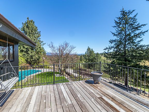 Sweeping panoramic forest views on all sides from this custom-built 3,840 sq ft home nestled in a valley between the Dishman Hills and Iller Creek conservation areas. Secluded 4.7 acre lot feels like an isolated wilderness sanctuary yet it is only 10 minutes from city services. This property features a fenced horse pasture, barn, 30x30 shop/detached garage with an office suite upstairs, and a large in-ground swimming pool. Huge formal living room with floor to ceiling windows and wrap-around (unstained) redwood deck. 2 Furnaces (one per level). New 50 year roof installed in 2011. Sprinkler system, frost-resistant plumbing in barn. Don’t miss the AERIAL VIDEO in Virtual Tour or at: https://youtu.be/fiItg8Ot_Po