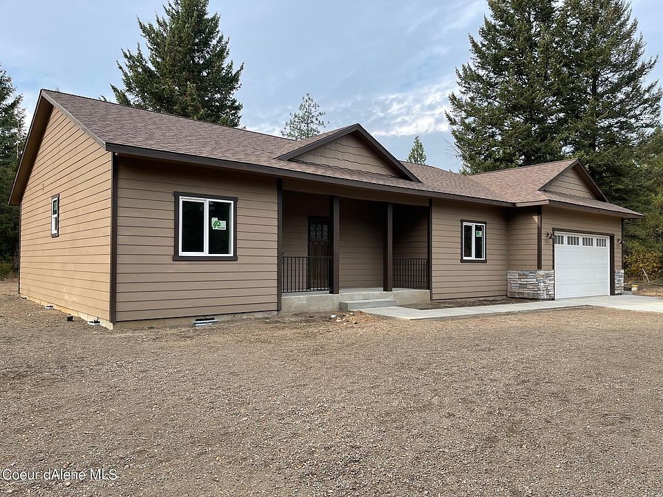 Beautifully treed parcel with single level, 2 step entry home. Open floor plan with vaulted ceiling in kitchen and living space. Seperate formal dining area plus a breakfast nook. Formal dining room could be used as office/4th bedroom. Granite/quartz counters throughout. Custom cherrywood cabinets with pullouts. Upgraded stainless steel appliances. Beautiful walk in, tiled double shower and large walk in closet complement the oversized master bedroom. Spacious second and third bedrooms. Large laundry/mud room between kitchen and garage. Forced air with heat pump for heating and cooling. Stone gas fireplace can heat entire home. Solid wood doors and trim. Low-e vinyl windows and smart side siding. Covered front porch and large covered patio. Hydro seeded front/back yard w/underground sprinklers. Conveniently located to Coeur d'Alene and Sandpoint. Adjoins 80 ACRES OF STATE LAND and another 640 ACRES just down the road for tons of recreational fun!