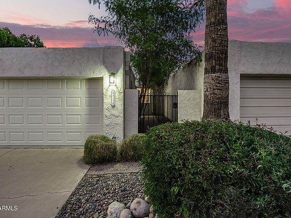 Welcome to your new home at this meticulously maintained three-bedroom, two-bathroom townhome with a two-car garage, nestled in a vibrant community that offers the perfect blend of comfort, convenience, and style. Step inside to discover a tastefully updated interior featuring fresh paint and flooring throughout, creating a modern and inviting ambiance that sets the stage for a life of luxury. The spacious living area boasts built-in bookcases and shelves, providing both functionality and elegance, perfect for showcasing your favorite books, photos, and treasures. Prepare to be impressed by the updated kitchen, complete with sleek countertops, gas range and ample cabinet space, making it a chef's dream come true. Whether you're whipping up a quick meal for yourself or hosting a dinner party for friends and family, this kitchen is sure to inspire your culinary adventures. Retreat to the tranquil primary suite, featuring a beautifully updated bathroom and plenty of closet space for all your storage needs. Two additional bedrooms offer versatility and comfort, providing the perfect space for guests, a home office, or a personal sanctuary. Virtually maintenance free ownership with brand new roof and AC unit. Outside, you'll find a cozy paver private patio where you can relax and unwind after a long day. And when it's time to cool off and beat the Arizona heat, simply head over to the community pool, where you can take a refreshing dip or soak up the sun while lounging poolside. Conveniently located near shopping, dining, entertainment, and major transportation routes, this townhome offers easy access to everything you need for a vibrant and fulfilling lifestyle. Don't miss your chance to make this exquisite property your own.