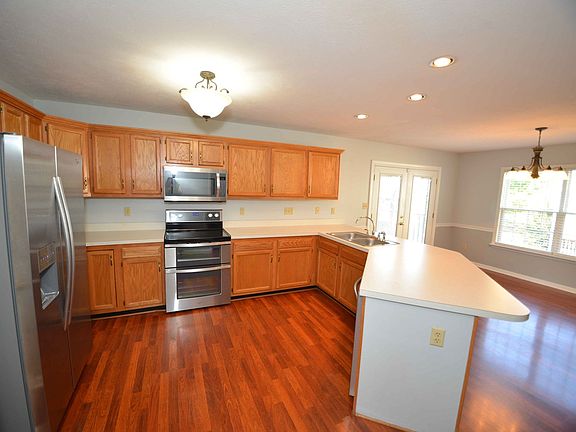 Located in the wooded subdivision of Oakhurst, this beautiful four bedroom three bathroom Cape Cod is inviting and has lots of entertaining space. Entering by way of the covered front porch, you step into a large living room featuring vaulted ceilings, stone fireplace and lots of natural light. The living room opens to the dining area and kitchen - perfect for hosting family and friends. The kitchen has stainless steel appliances and offers an abundance of cabinetry, a large peninsula counter top and pantry for the chef in you! French doors lead from the dining area onto the back deck and spacious, meticulously landscaped and fenced backyard. There is a large first floor bedroom that could be a master with its walk-in closet and adjacent full bath. This room is also located near the first level laundry.