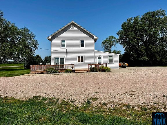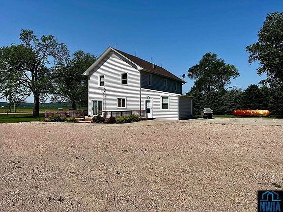 Rare Elk Point acreage! A new roof was just installed as well as new gutters! Check out this 5 bedroom, 1.5 bath home sitting on 2.5 acres on a hard surface road! Don't let the exterior fool you on this one. It's much bigger on the inside than it looks from the outside! Just inside the front door you'll find a spacious living room with a large picture window providing ample light. Just to the right of the front door is a cozy sitting room with a large picture window and slider to the wood deck giving this space the feel of a sunroom. Also on the main floor is a large laundry room and the formal dining with a great view of the back yard. The eat-in kitchen has ample cabinet storage and prep space with the appliances included. The half bath is also conveniently located just off the kitchen and sitting room. Upstairs hosts all 5 bedrooms with each having oversized closets and share a full bath. The 16X14 addition off the back is perfect for storage with direct access to the kitchen. This acreage has it all with newer vinyl siding, updated vinyl windows creating a maintenance free exterior. The furnace and Bosch heat pump were replaced in 2022. A mature shelter belt and a large number of spruce trees provide great protection from the winter winds. This property sits just 2 miles from the Missouri River and a state recreational area locally known as Burbank Beach. Don't wait on this one!