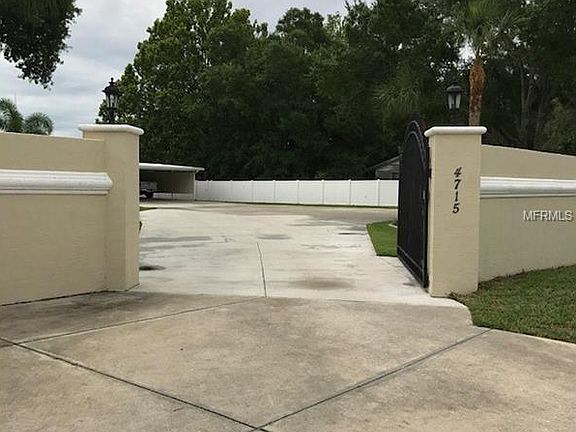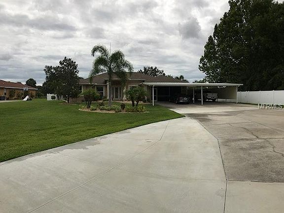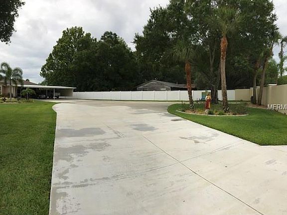 Welcome to Mullet Manor, business in the front, party in the back! This lake view home has been a blast to live in. Park your boat, trailers or RV on the oversized driveway protected by the front wall and gate. There is a 6 car carport leading to the attached 20x26 2 car garage which has air conditioning. The 2,442 square feet consists of a kitchen with granite counter tops and stainless steel appliances, 3 bedrooms, 2 baths, a formal living room, formal dining room, family room, the laundry room which doubles as a butlers pantry, and den with custom cabinetry and desk that could stay. The covered lanai offers an out door shower and half bath near the in ground pool and hot tub. Follow the paver walk way to the fire pit area with outdoor wet bar offering a mini refrigerator, keg-o-rator, and television for those football afternoons, and a custom shed to house your firewood, corn hole game and so much more. Horse shoe pits and corn hole area illuminated for the get togethers that go past sunset. Many extra's include crown molding, central vac, a built in murphy bed with shelving in bedroom #3, and a 12 zone irrigation system on your own well to maintain the extensive and expensive landscape..