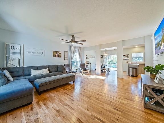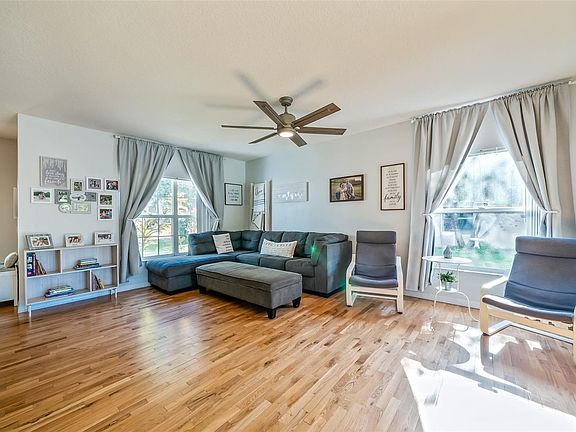 Looking for a beautiful and spacious home with an easy commute to St. Pete, Tampa or Sarasota? Fosters Creek is ideally located for commuters in any of those cities. As you make your way home through tree-lined streets you will enter the front door to an open floor plan with stunning hardwood floors. The kitchen has freshly painted cabinets with newer stainless steel appliances and is opened up to a large eating space that faces the fully fenced backyard through sliding glass doors. Right off the kitchen you will find the master suite with a walk-in closet. The master bath includes a soaking tub and large walk-in shower. Located upstairs are three bedrooms, all with walk-in closets, and an extra space that could be used as an office or play area. The AC is top of the line and has the APCO-X whole house air treatment system and a UV light. The garage also has its very own mini-split AC system to keep you cool all summer long. Oh, and there was a BRAND NEW roof installed in 2021. Out back you will immediately notice the beautifully custom built pergola that will keep you protected from the sun and rain, and in the evenings you can entertain company around the welcoming firepit. With a fully mature avocado tree and space to put a pool, the backyard has endless possibilities. Make this your dream home today!