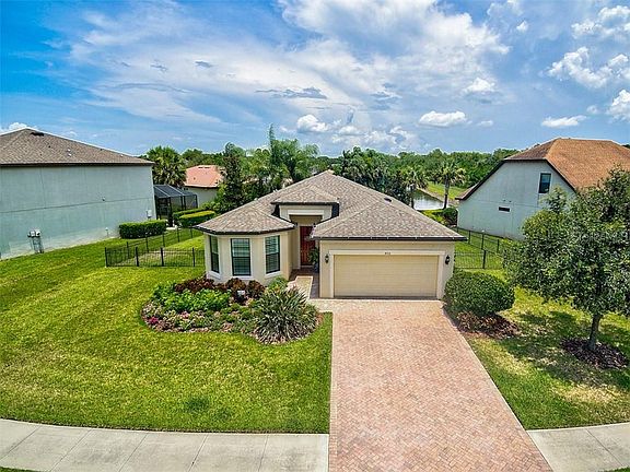 Come and be amazed at this meticulously loved home! This home has an elegance that is simple, easy and charming! The Reserve at Crossing Creek is a hidden gem and close to every convenience--yet hid away off the beaten path! Located on a fenced lot with a wooded view and a water view with privacy. You will enjoy your morning coffee, and your evening cocktail, on your screened extended paver lanai. This home has all the perfect upgrades! The garage was extended to add five feet for storage, and a utility sink, and the lanai was screened in and extended. Additional insulation was added across the entire house/lanai and garage to create an above average rating of R38! That's a definite cost savings! The open kitchen features raised-panel cabinetry with 30" upper cabinets and Granite countertops and an 8 foot long granite island. Additional cabinetry was added in the kitchen nook for expanded counter space and storage! The master suite features wainscoting and a deluxe bath with dual vanities and a soaking tub, and the walk-in closet is perfectly huge! There is a bonus room, which can be used as your home office, gym, or sitting room! This is the best of the best! The floor plan flows beautifully, and the main living areas feature ceramic tile. The split plantation shutters are just the icing on the cake! The AC was recently serviced and the paver driveway and paver lanai allow for a low maintenance exterior. Low monthly HOA and No CDD fees. Click on the video link to view the custom exterior and interior video.