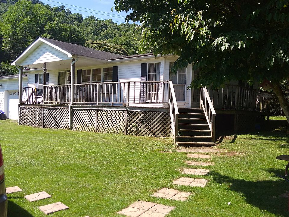 NO SUNDAY SHOWINGS. Beautiful setting on banks of stocked Trout Stream flowing through front of property -Fish at your front door! Lovely yard - with ample room for garden, fruit trees or berries. Home offers great room w/vaulted ceiling, eat-in kitchen; three bedrooms, 2 baths. laundry room. Attached 26'X28' - Two car garage/workshop will be any mans dream! There is additional storage shed for lawn mower or any use you might need. Huge shade trees - notice tire swing in tree, pool can stay if you want. Deck. Nestled in secluded wooded serenity on banks of noisy trout stream - life could be good here. Night time you can see the stars, hear the stream , build fire pit for evening relaxation. Small brook flows from spring on property. No restrictions.